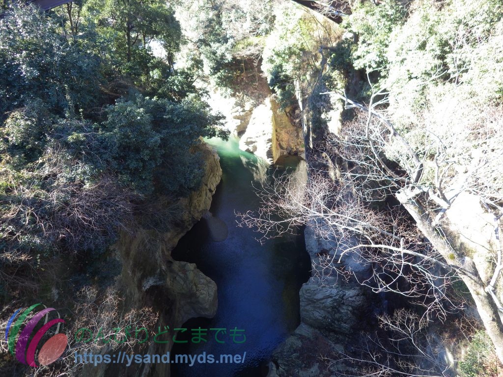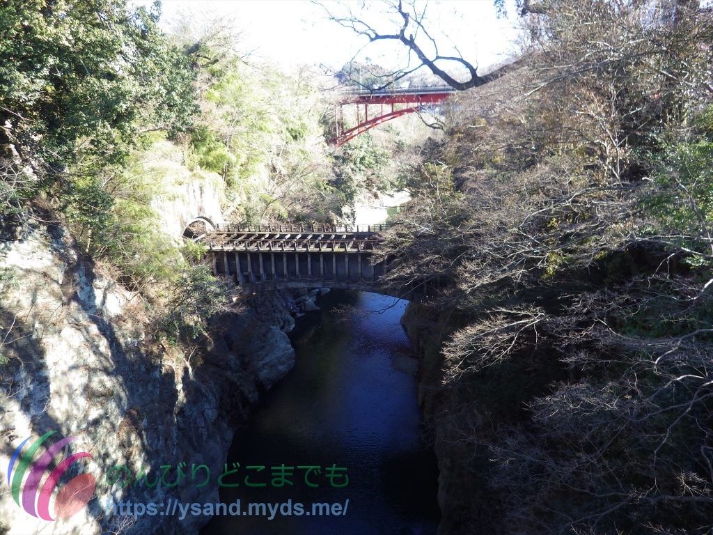 かなり深い渓谷ですが、橋は絶妙に狭いところに掛かってますね。