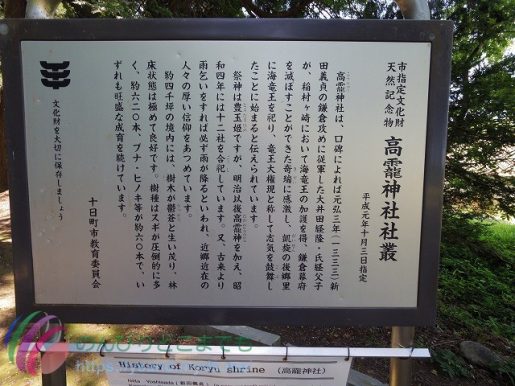 大井田氏が鎌倉攻めの際に、稲村ケ崎において海竜王の加護を得、鎌倉幕府を滅ぼすことができたことにより、海竜王を祀ったことが始まりと書いてあります。