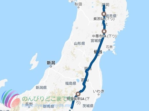 まず、一日目の移動ですね。住まいが埼玉県北部なので、東北道をひた走りです。