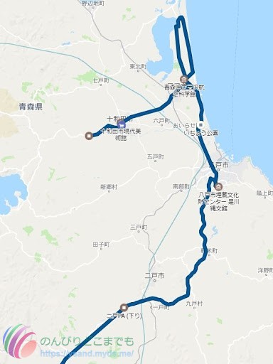 続いて三沢航空科学館、仏沼、十和田市現代美術館、道の駅奥入瀬でこの日はゴールです。