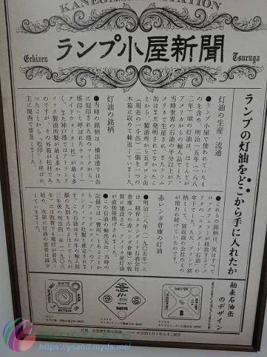 ただ、斜め読みすると、明治十四年に敦賀駅から京都大阪方面に鉄道ができたみたいなことを書いてあり、そこからランプ小屋ができ、それから明治四十一年に敦賀でも電灯が使われ始めると段々と少なくなっていったようです。