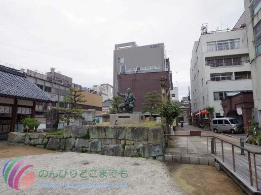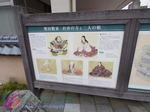 ここでは柴田勝家とお市の方と三姉妹の銅像が仲良く並んでいます。