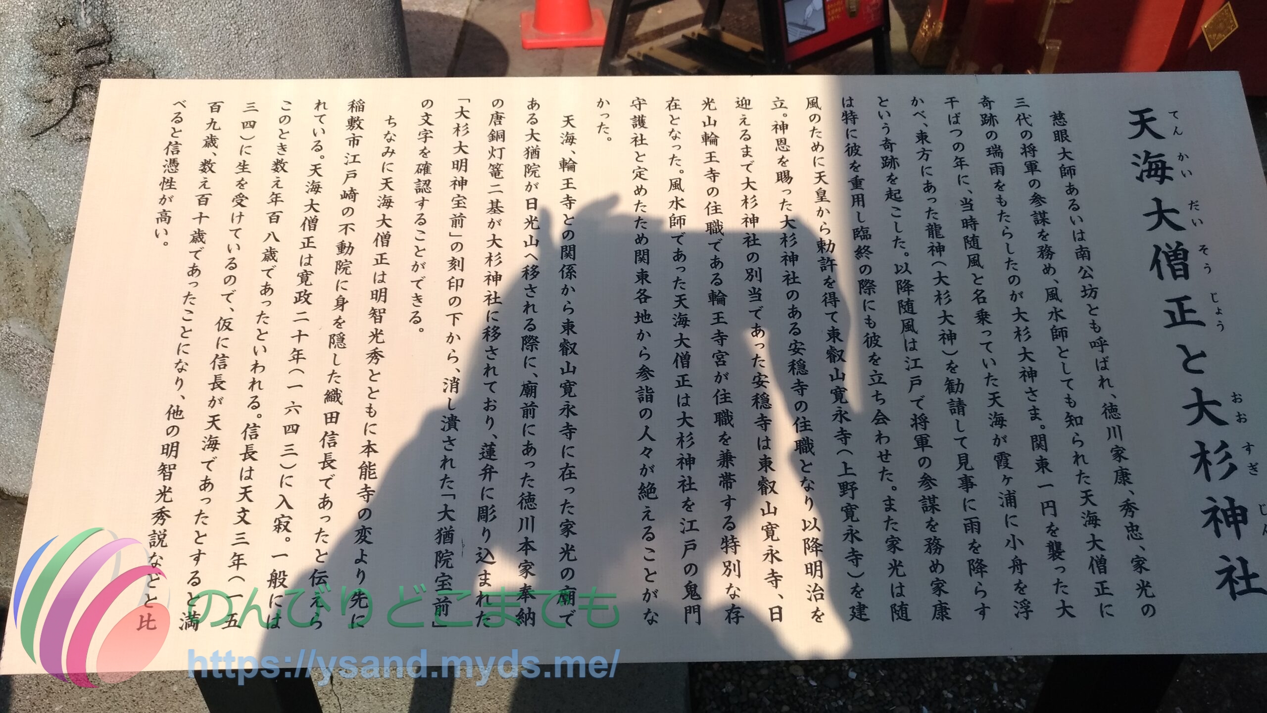 大杉神社では、天海僧正は織田信長だったと書いてあります。