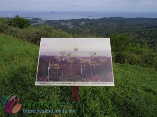 見えにくいのですが、下の写真に、周辺の城砦群があることを示しています。