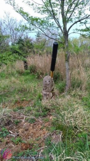 気持ち良く眺めた後、下って行くと、登って行く途中から気になっていた木像が見えてきました。