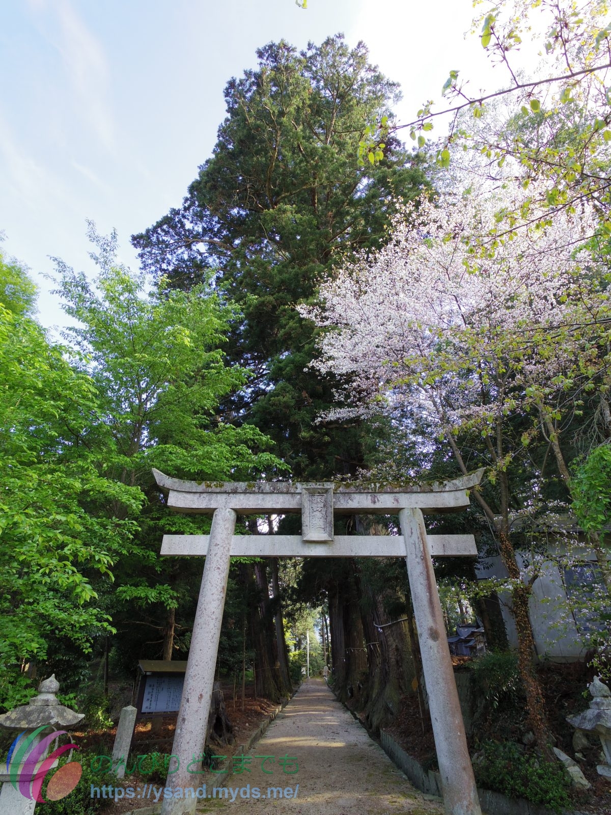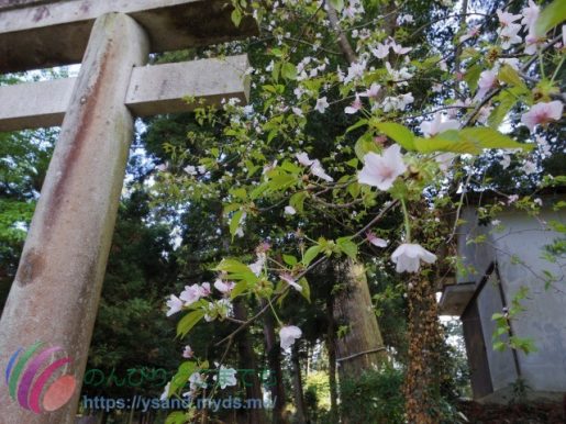 入り口側の鳥居の所に、まだ、桜が残っていました。