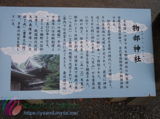 石見や出雲はたたら製鉄が盛んだったのもあるので、その関係で物部氏が関わっていたのだろう事は分かります。