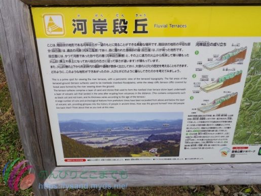これが一番河岸段丘と分かりやすいです。左方向の辺り