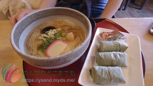 嫁様が頼んだのはにゅう麺と柿の葉寿司のセット