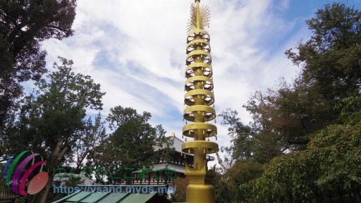 下の写真は七重塔 相輪というもので、昔、七重塔があり、その先端に飾られていたものを1970年のEXPOで古河パビリオンにて再現したときの物だということです。