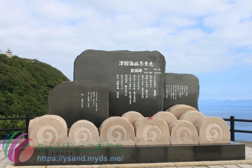 歌の大ヒットの記念と新しい観光名所ににしたいという思いからか、津軽海峡冬景色歌謡碑という石でできた碑があり、その前にボタンがありまして、それを押すともちろん名曲「津軽海峡冬景色」が流れるんです。