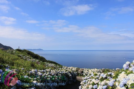 ここは八月中頃にも関わらず、紫陽花(アジサイ)がちょうど咲いているので、さらに綺麗な眺めですよ。