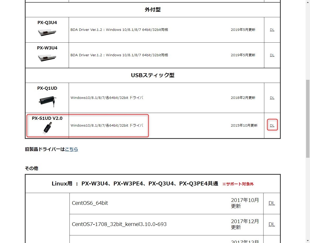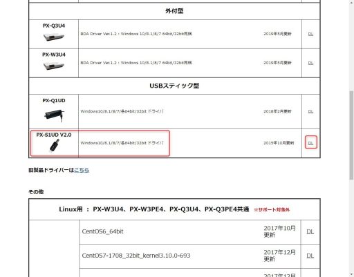 http://www.plex-net.co.jp/download/ ここの製品名のPX-S1UD V2.0をダウンロード