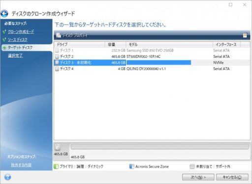 次にターゲットディスク(WDのM.2)を選択します。