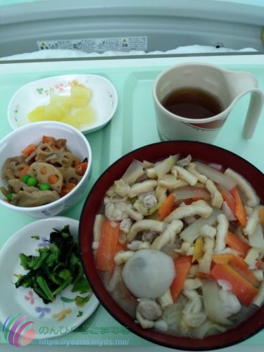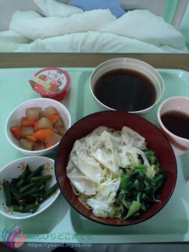 カレーはナンが出たりするし、ラーメン、うどん、パスタ、焼うどん、三食丼、チャーハンなどなど、とても病院で出るようなメニューじゃなかったですし、大変、美味しかったです。