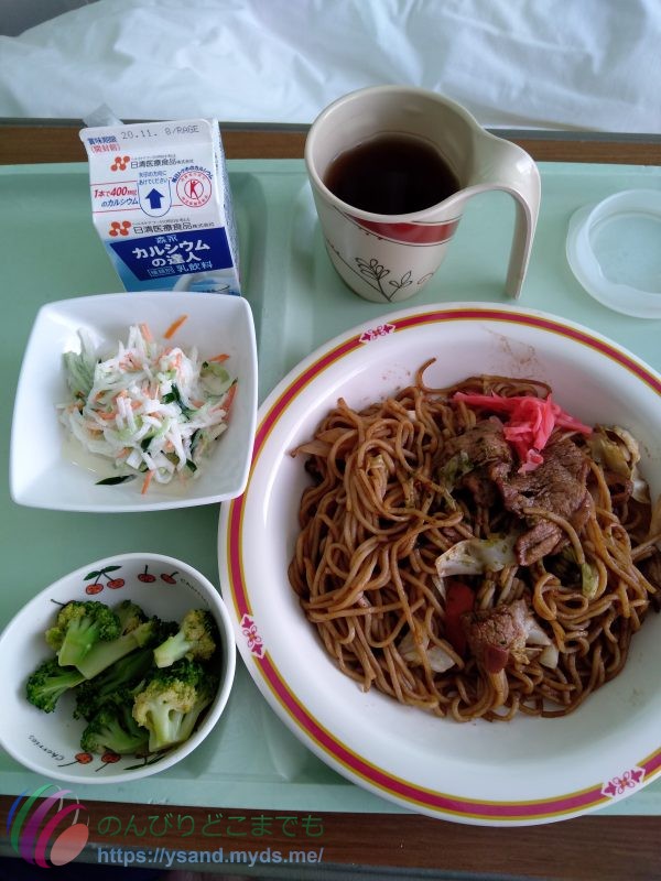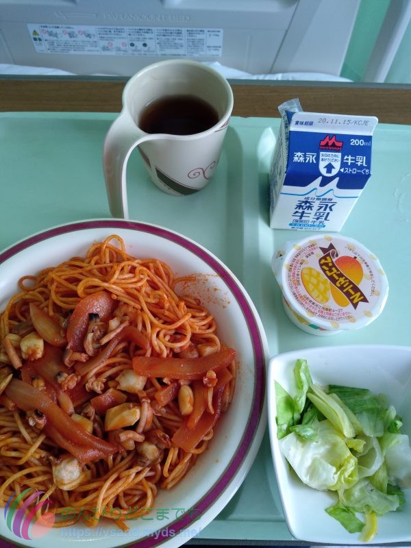 カレーはナンが出たりするし、ラーメン、うどん、パスタ、焼うどん、三食丼、チャーハンなどなど、とても病院で出るようなメニューじゃなかったですし、大変、美味しかったです。