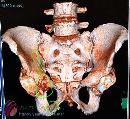 というのは、骨盤が2つに割れてしまっておらず、ヒビが何か所かある。という状態で、手術をするまで酷くなかったというのが大きいです。