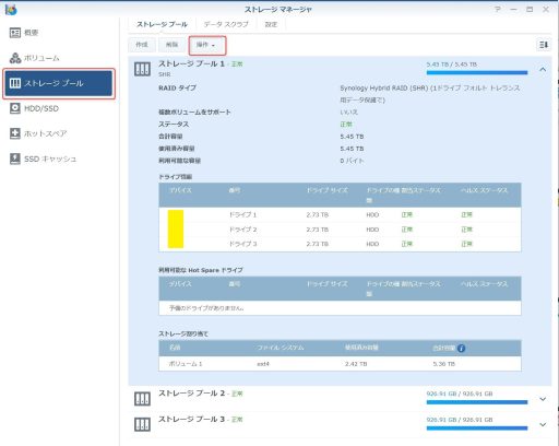 ちなみに、SHR(Synology Hybrid RAID)は、2Driveの時はRAID1、3Drive以上の時はRAID5に勝手に切り替わる仕組みのようです。