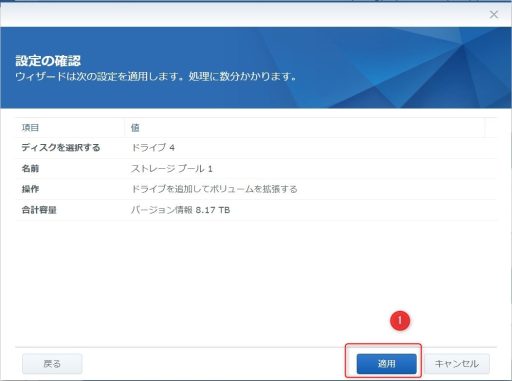 3TB、追加で4日掛かりました。まぁ、そこそこデータ量もあるし、データの分散させたり、パリティチェックしたりしているので、仕方ないですかね。
