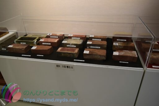 下は各地で生産されたレンガ、結構、あちこちで作ってますね。
