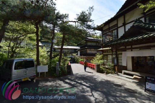 駐車場の先はすべて温泉旅館に行く道で、抜けられる道はありません。