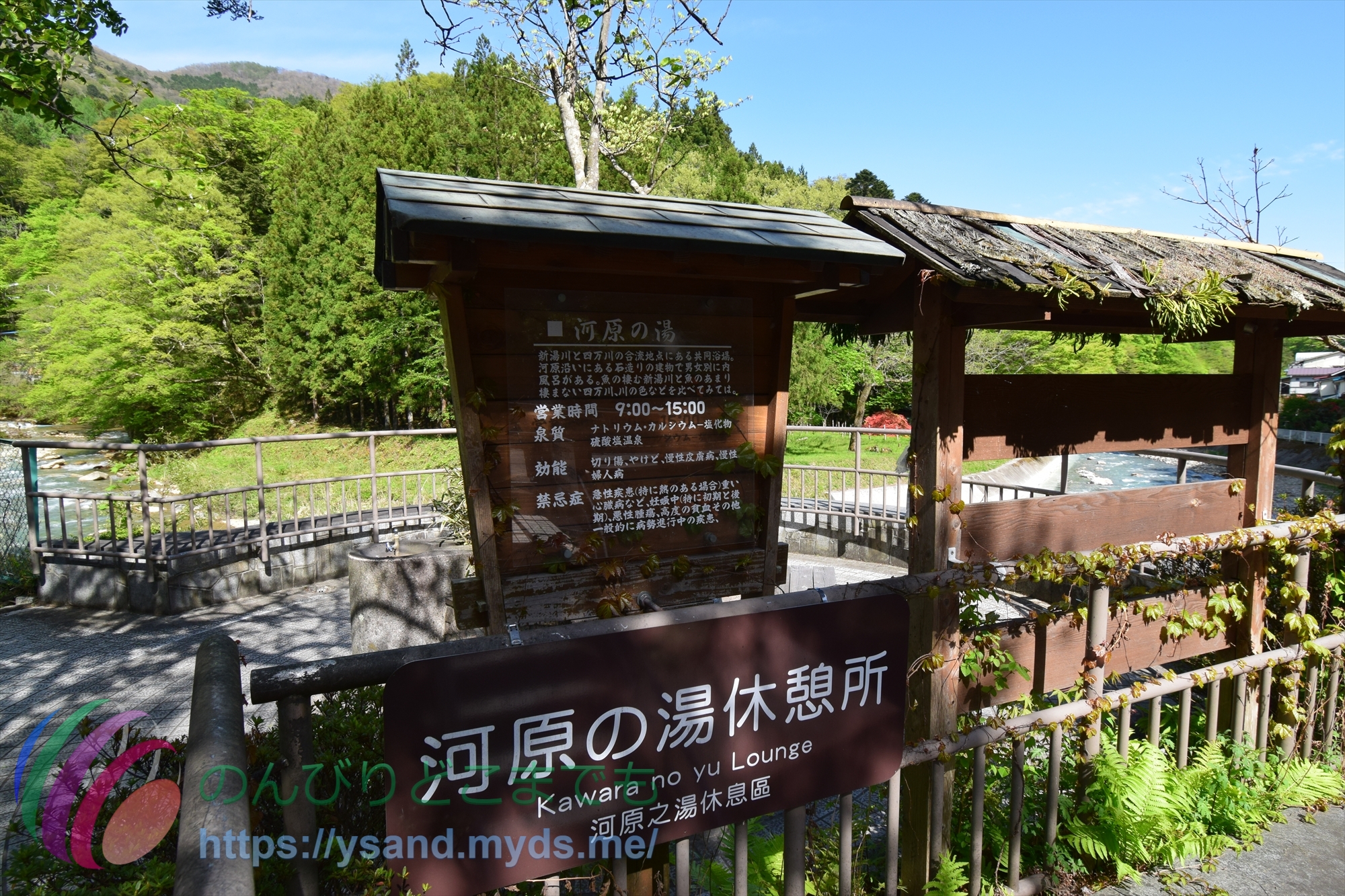駐車場からちょっと行くと河原にある温泉が見えてきました。