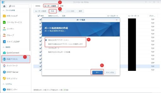 同じくコントロールパネル→外部アクセス→ルーターの設定→作成→組み込み式アプリケーション→次へ