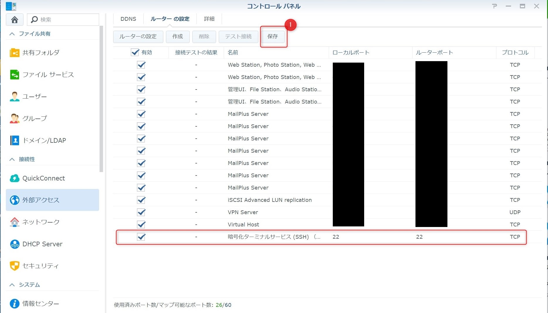 これでSynology側の設定は終了。