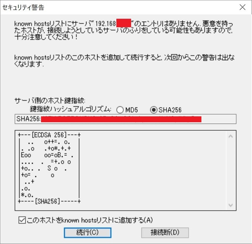 最初なので、以下のメッセージが出ますが、もちろん「続行」を押します。