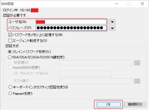 ホストにはサーバーの「IPアドレス」もしくは「DNS名」で接続できます。