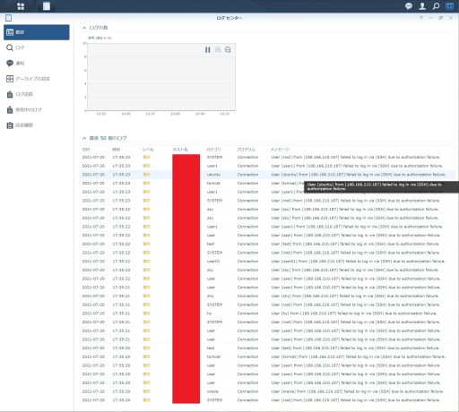 てか、ポートは閉じてなかったのですが、ユーザー名とパスワードをクラックできなかったのと、自動ブロックで遮断されました。