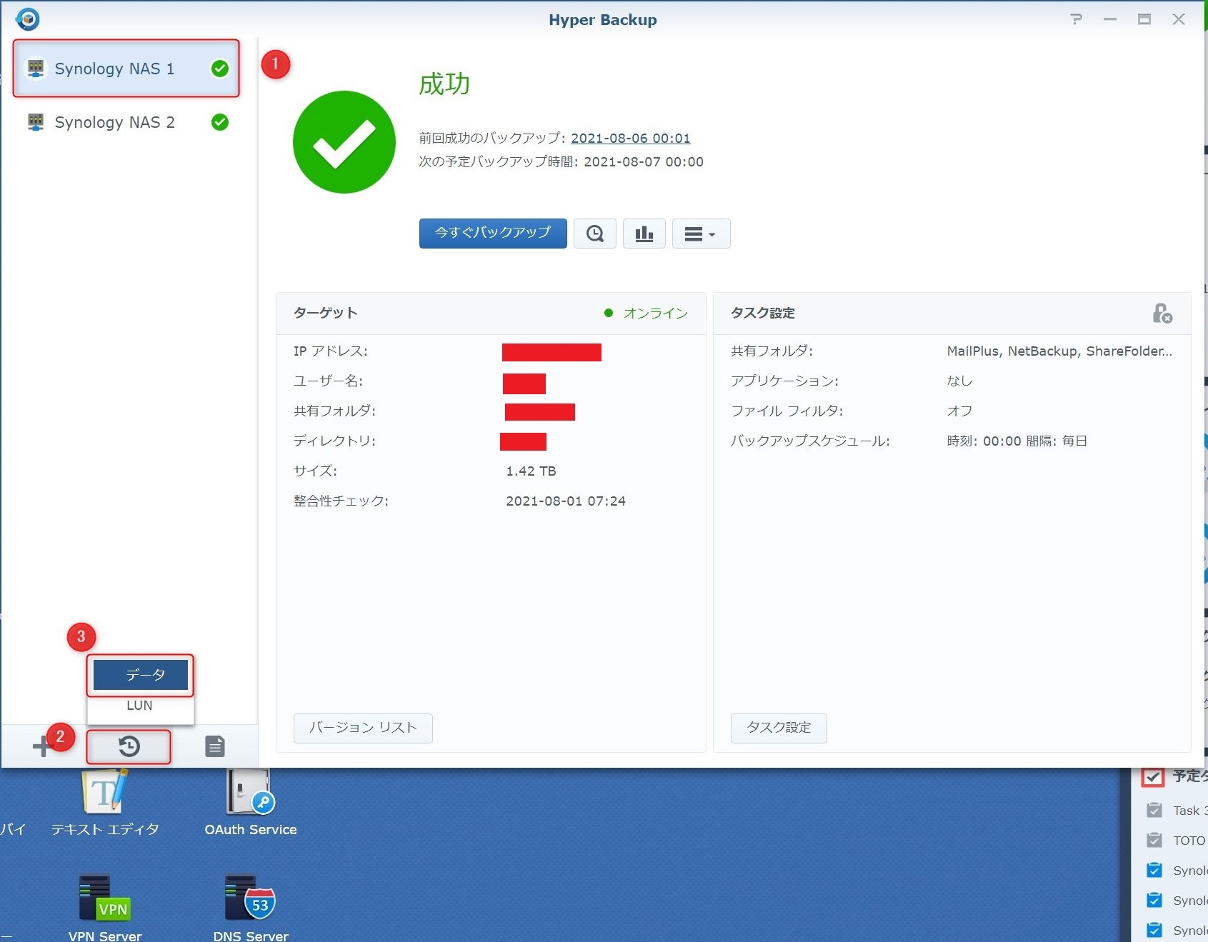 Hyper Backupの設定は、以前書いた、こちらの記事からお願いします。