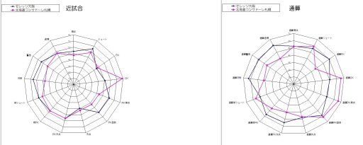 データの解析結果を比べるにはレーダーチャートが便利なので使って見ました。