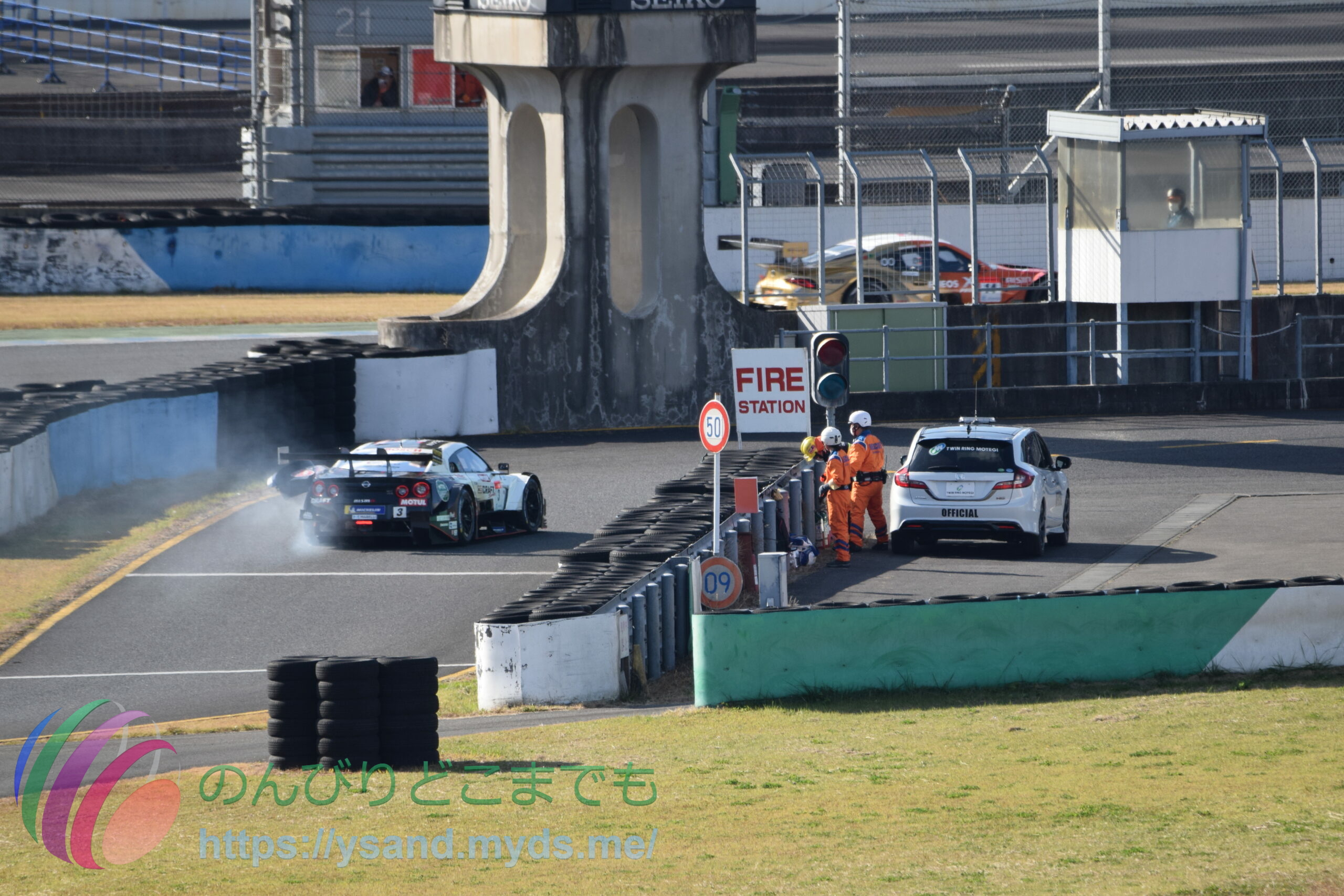曲がり始めにちょっと接触したために、スピンした。ということなのかな。
