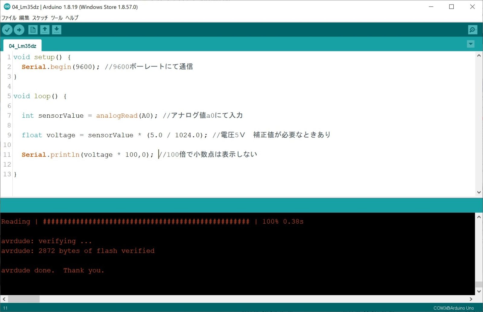 Serial.println(voltage * 100,0); //100倍で小数点は表示しない