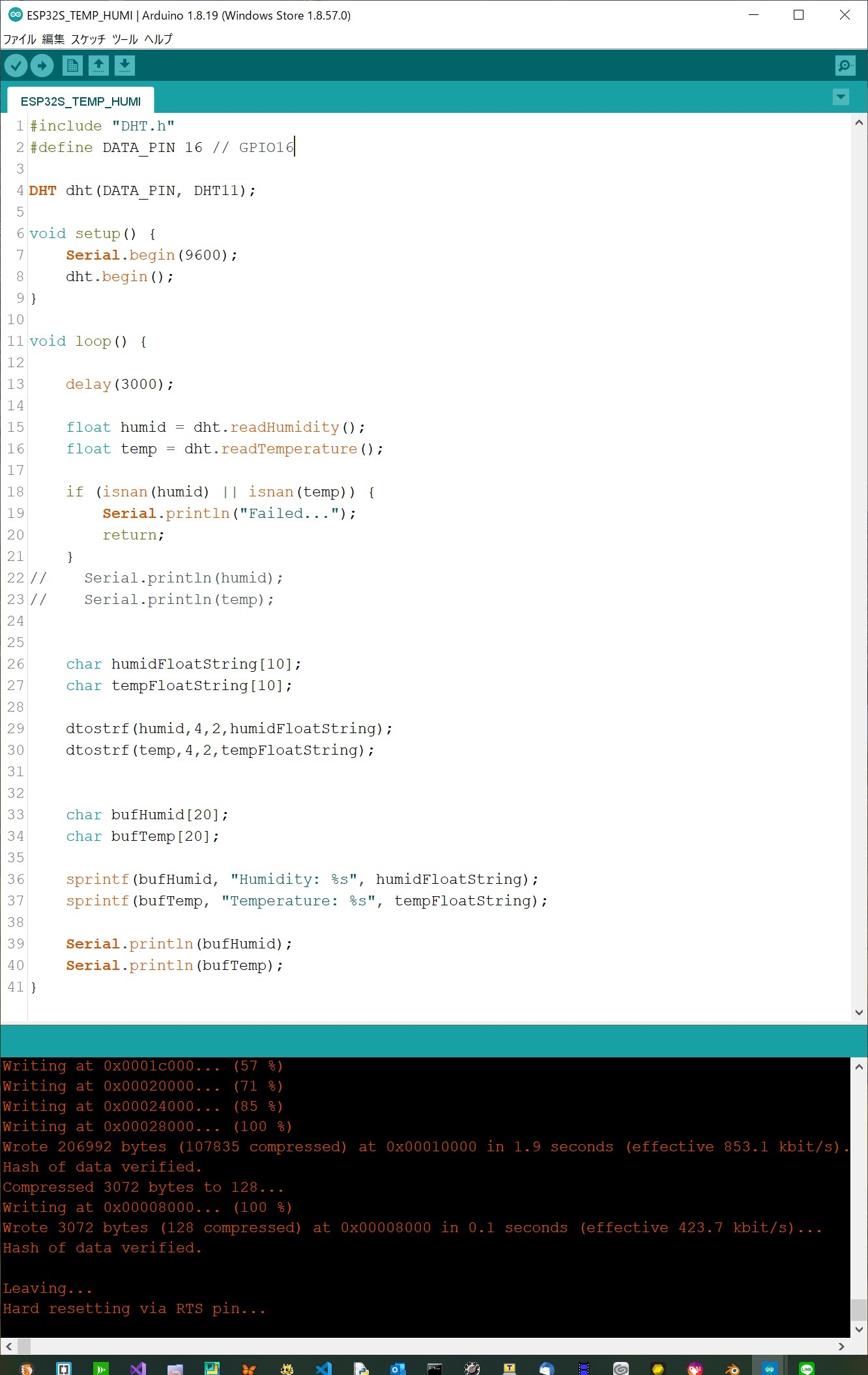 さて、ESP-32Sの動作チェックが確認できましたので、続いて温度と湿度を同時に測れるセンサーDHT11を利用して見ましょう。