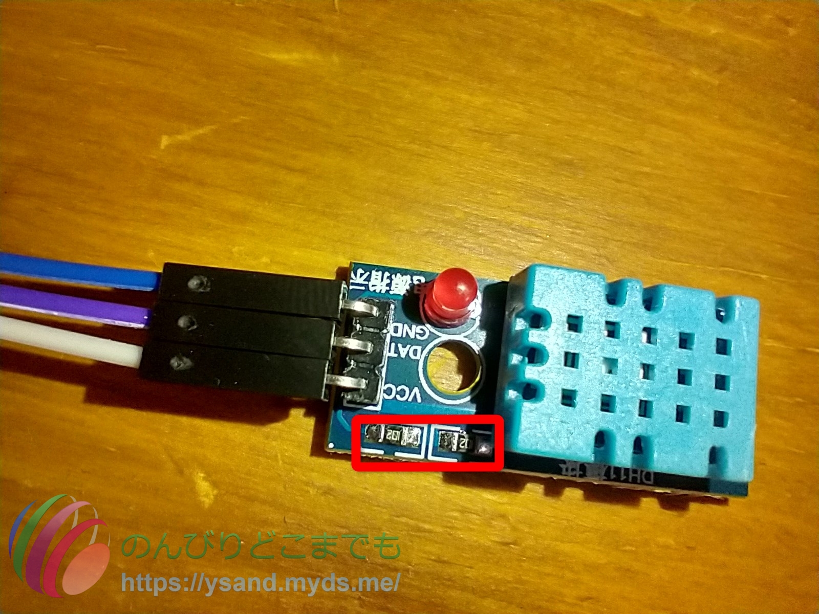 購入したDHT11ですがあらかじめ20KΩのプルアップ抵抗が付いていて便利でした。