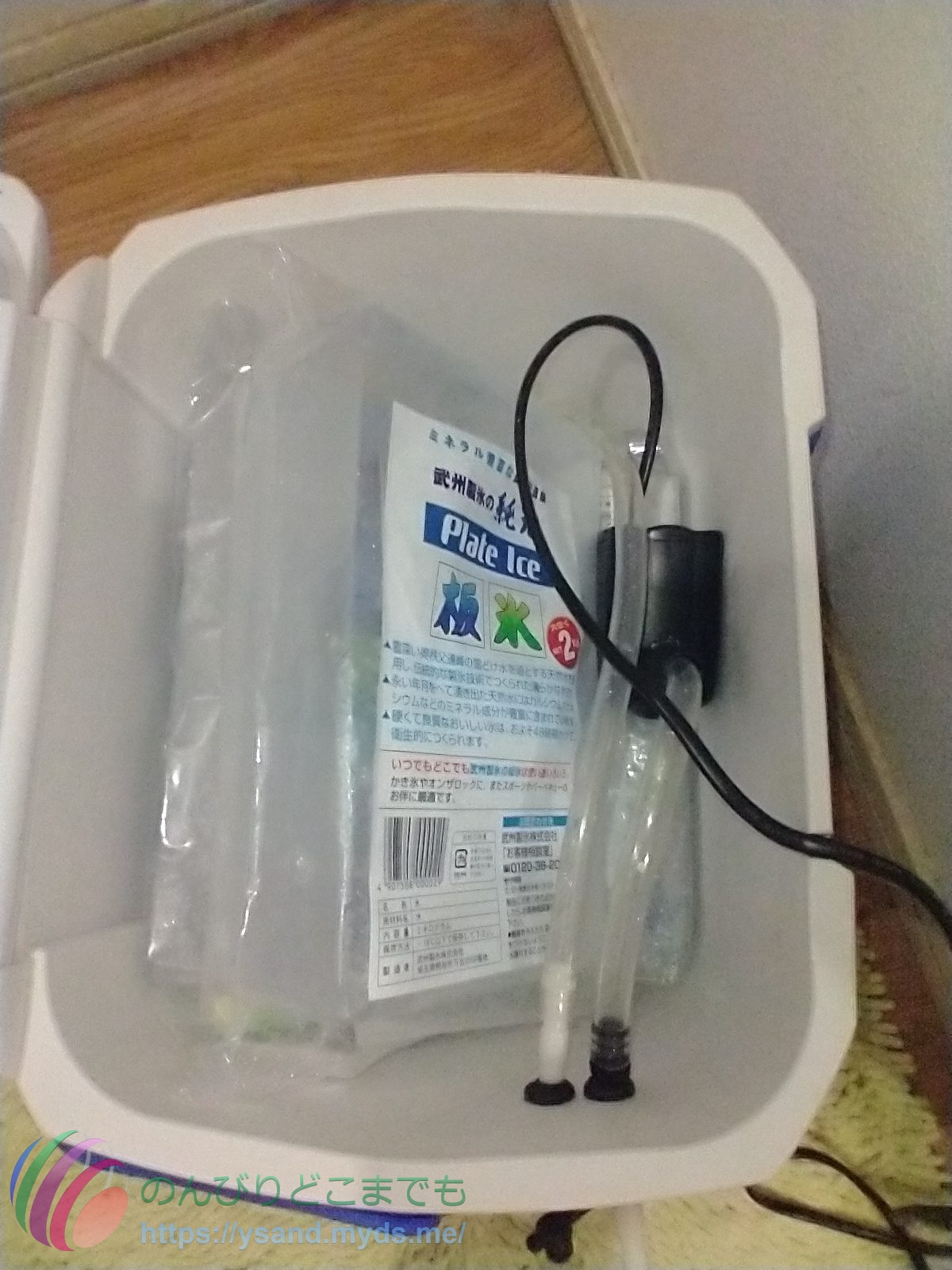 見ての通り、板氷だと目一杯で蓋が閉まらんことになりそうでしたが、1枚下に敷いて、残りを斜めに立て掛けて、なんとか蓋が出来ました。