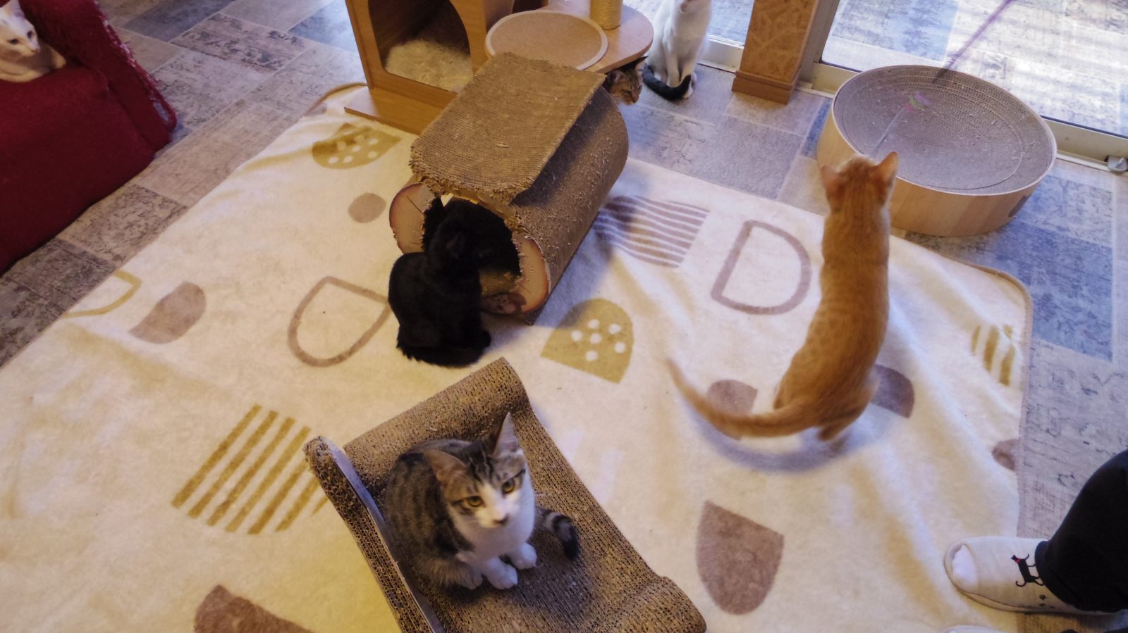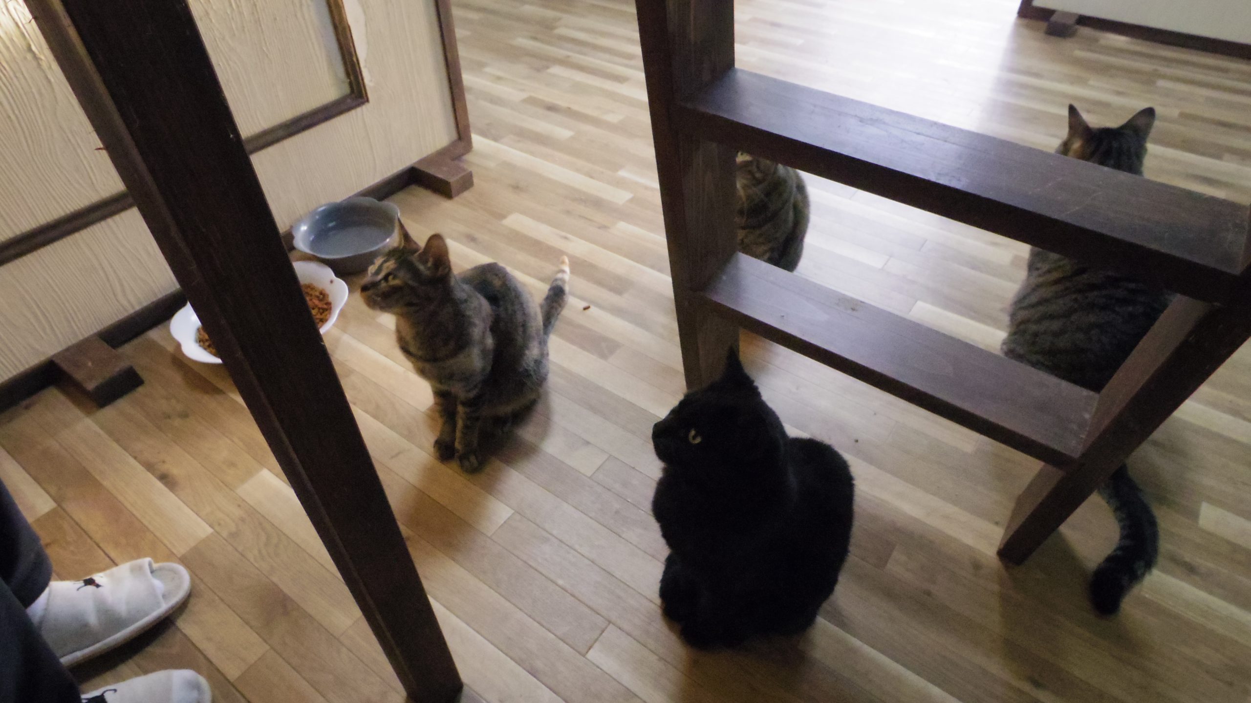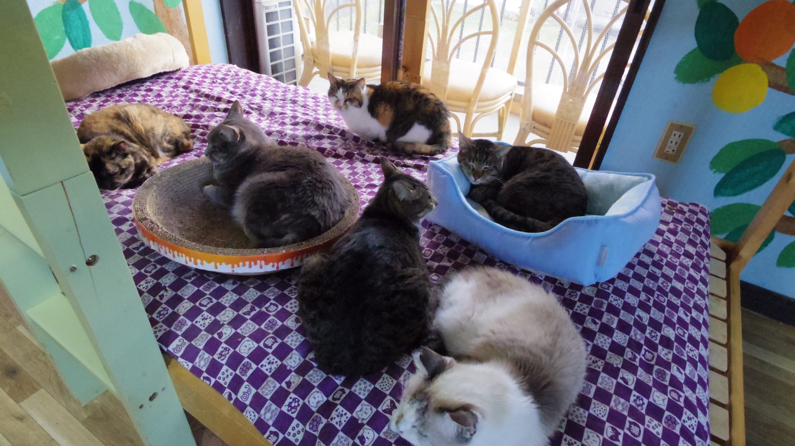 年配の猫や、怪我して足が無い子や、片目が無い子など、さまざまな猫たちがいました。