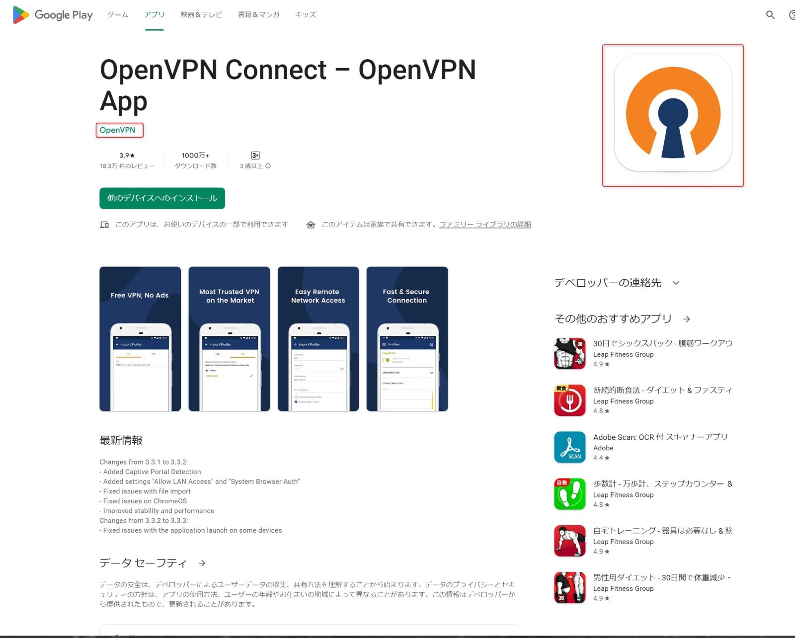 OpenVPNに似ているのがいっぱいあるのですが、マークと会社に注意してインストールしてください。