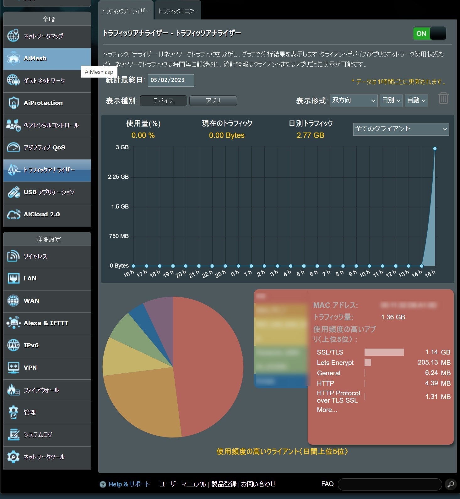 トラフィックアナライザーで、デバイス毎に見れたり。