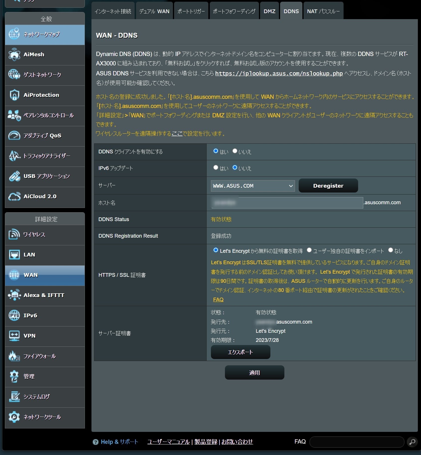 DDNSも設定できます。
