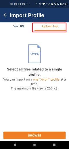先ほどルーターからエクスポートしたファイル(client.ovpn)をスマホに転送(メールやシェアソフトにて)します。