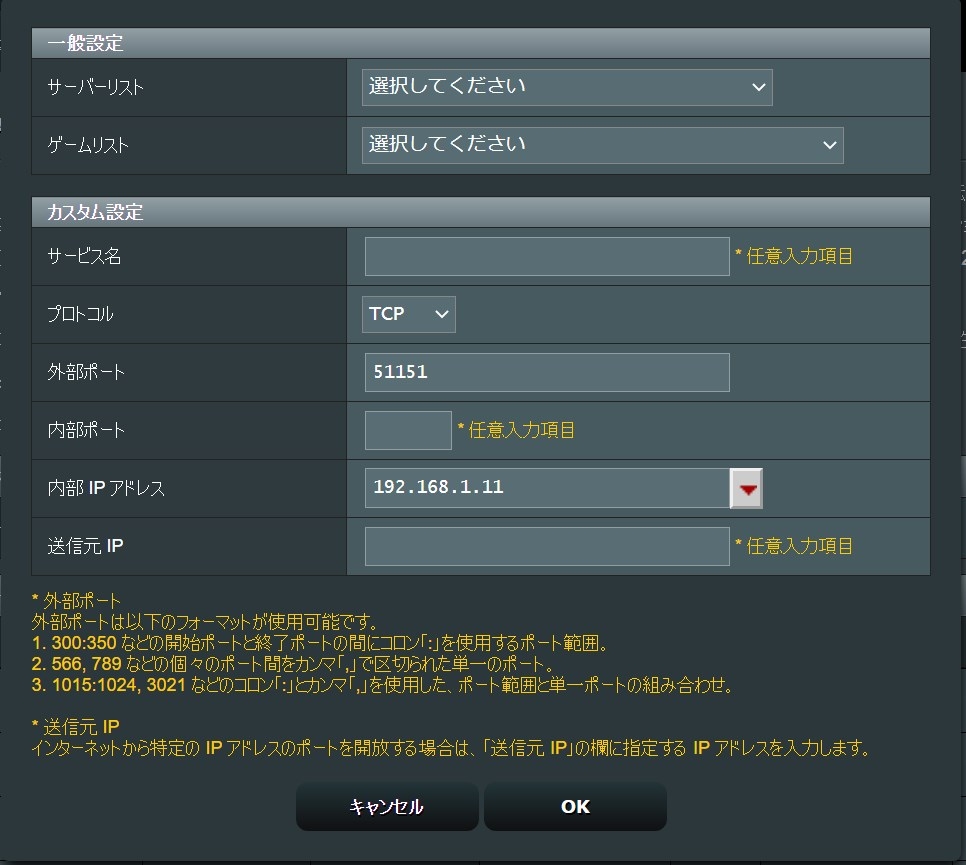 で、ルーターでその 51151ポート を開放します。