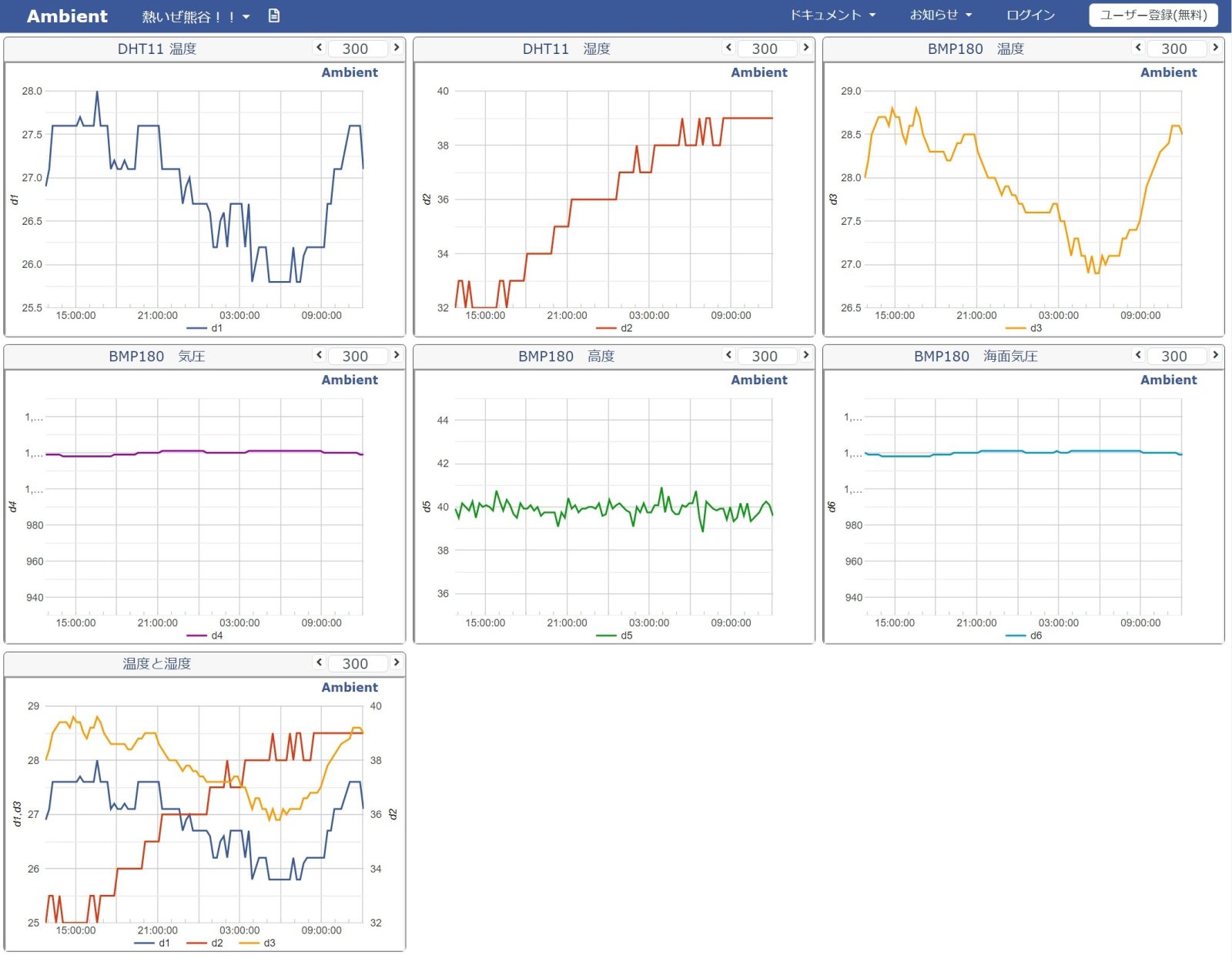グラフ化ですが、ゆくゆくは自分のデータベースから自分で作ったWebページへ表示したいのですが、PHPを学んでいる時間が今は無いので、とりあえずAmbientという便利なサイトを利用させてもらいました。