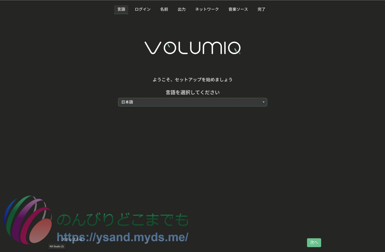 2).Volumioのアカウント作成。作成しなくてもOKで、NEXTを押す。