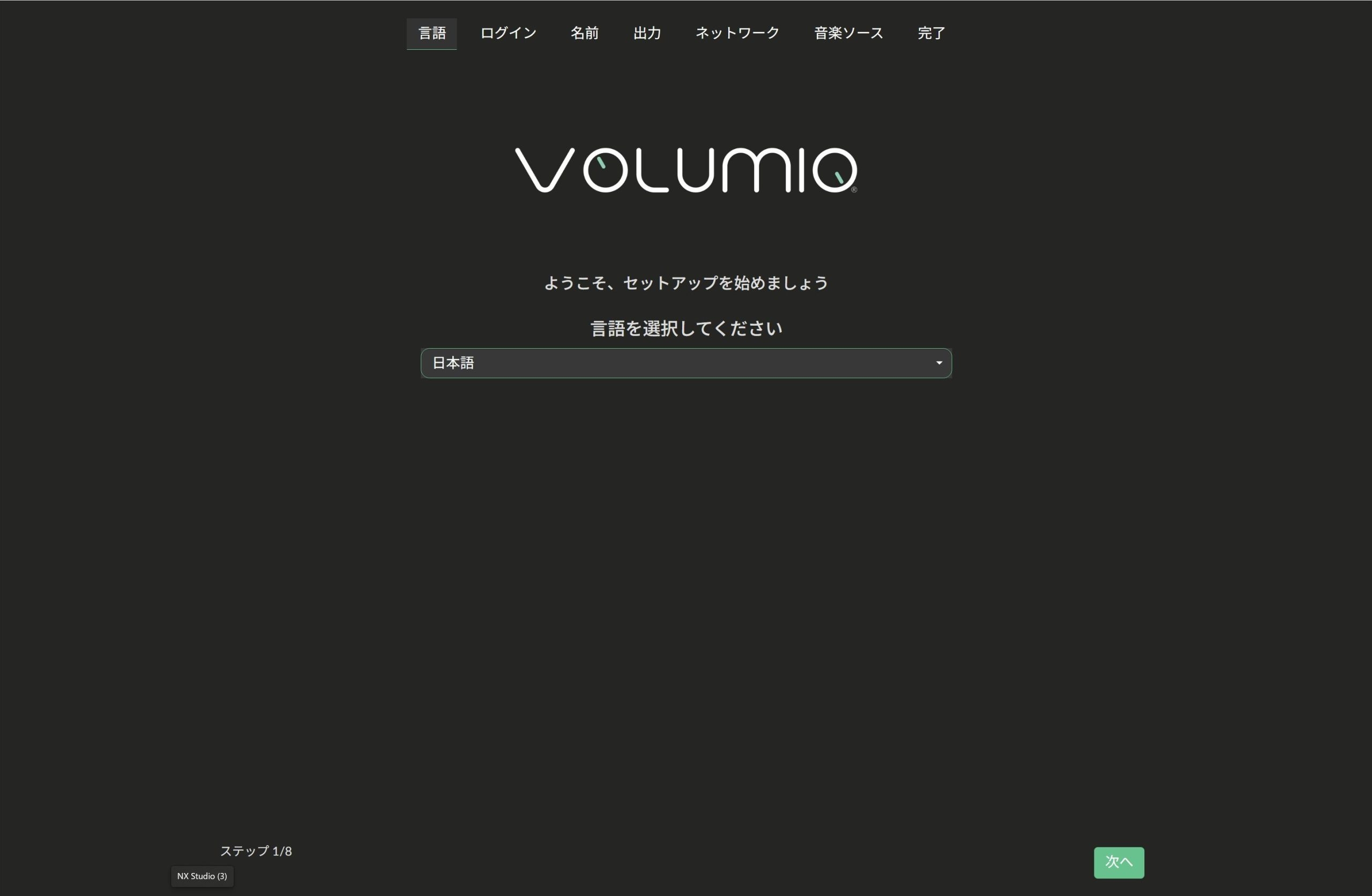 2).Volumioのアカウント作成。作成しなくてもOKで、NEXTを押す。