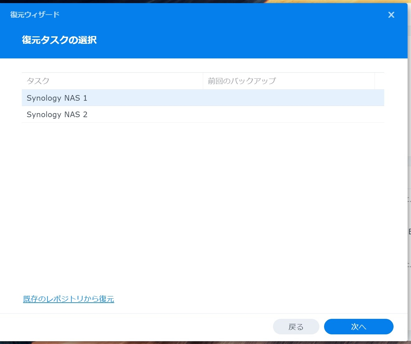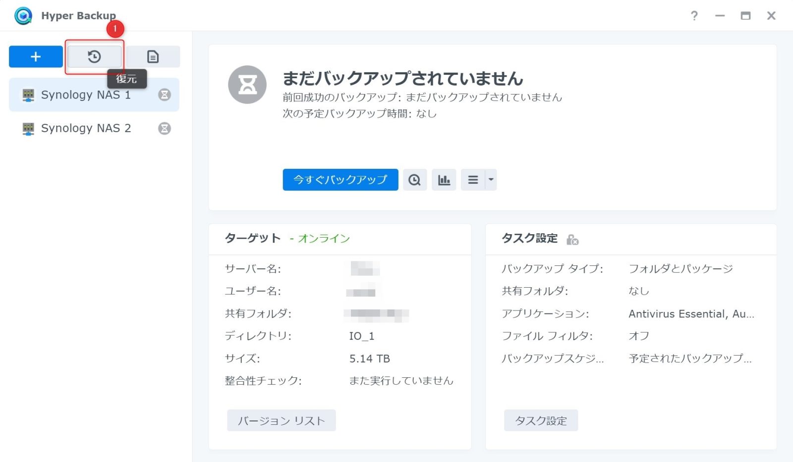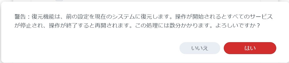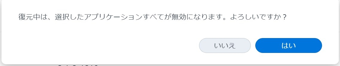 自分が構成したHyper Backupの情報が反映されていることを確認したら、「はい」を選択して復元を行います。