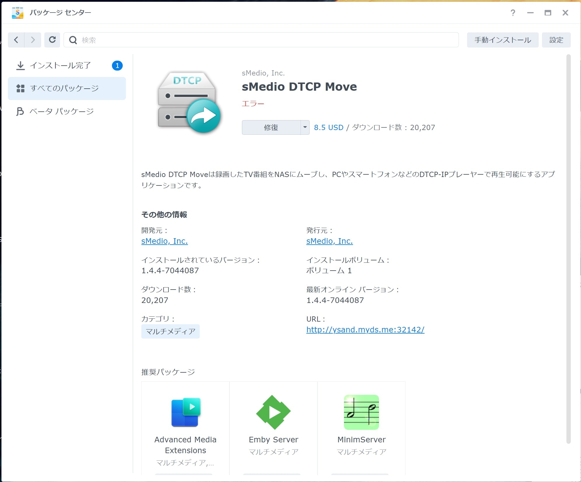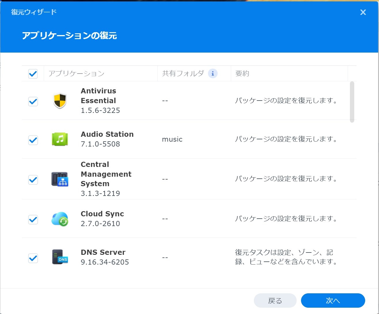 上記の操作を行うと、自分の使っていた構成が反映され、まだDSM7にてインストールされていないアプリ類を自動的にインストールを行うと思います。(たぶん。そうだったような。。)