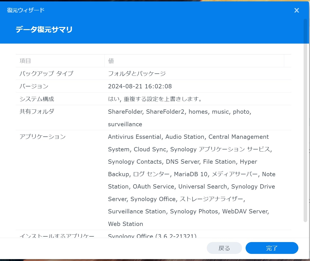 と思いなおし、大変面倒な、システムの再構成&Hyper Backupによる復元を行おうと思い立ちました。